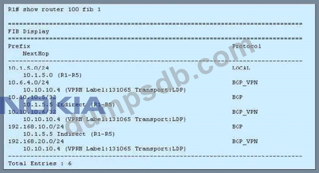 Based on the output about VPRN 100, how many prefixes has router R1 learned from CE router R5?
