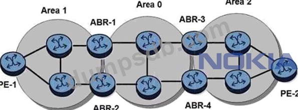 An LDP-over-RSVP tunnel is established between PE-1 and PE-2.