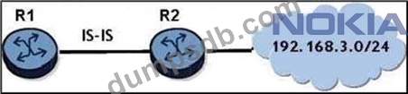 Router 2 advertises the network 192.168.3.0/24 to router R1 via IS-IS.