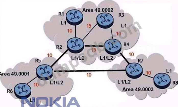Given the diagram below, what path will traffic follow from router R6 to router R3, and from router R3 to router R6, if IS-IS is the routing protocol? The numbers beside the links are the metrics for that link.