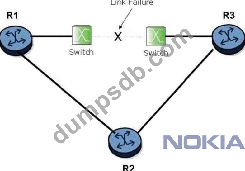 Before the link failure, all routers have operational OSPF adjacencies between them and there is a BFD session between routers R1 and R3.