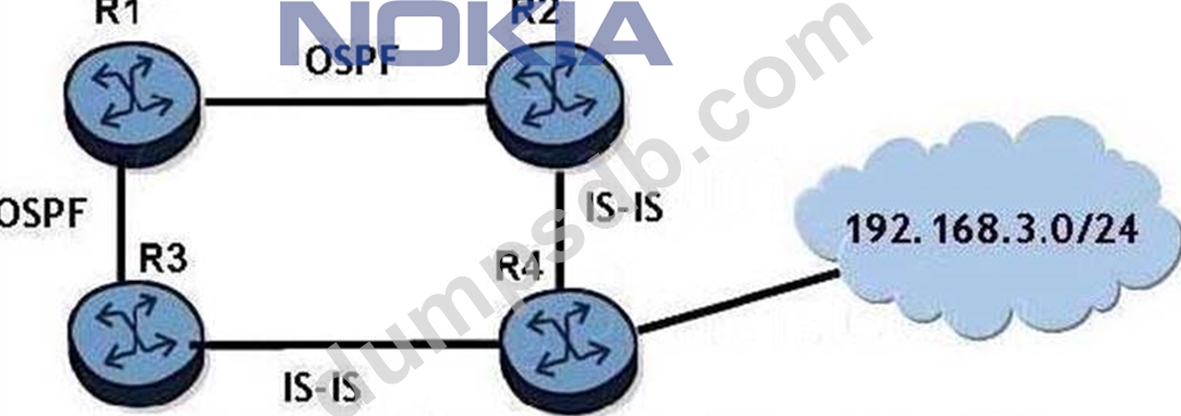 If router R2 redistributes the IS-IS route to 192.168.3.0/24 into OSPF, router R3 will receive two routes to 192.168.3.0/24.