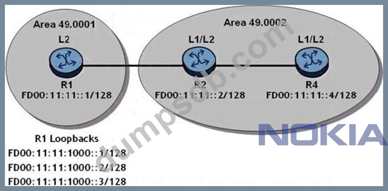 Router R1 distributes its globally routed address and its loopbacks into IS-IS. Routers R2 and R4 have their globally routed addresses in IS-IS.