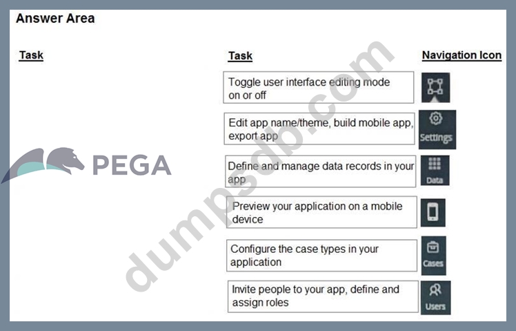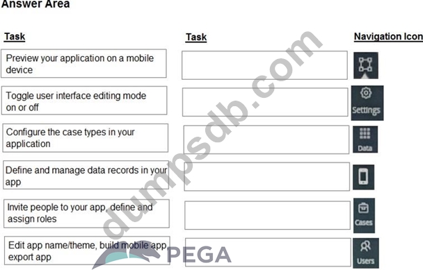 Select each Task on the left and drag it to the correct Navigation Icon on the right.