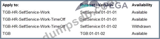 A rule with an Apply to: class of TGB-HR-SelfService-Work-TimeOff references a rule named ConfirmationRequest. The four instances of ConfirmationRequest in the rules cache are shown in the following table.