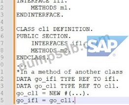 The following are the explanations for each statement: A: This statement is valid. go_ifl may call method ml with go_ifl->ml(). This is because go_ifl is a data object of type REF TO ifl, which is a reference to the interface ifl. The interface ifl defines a method ml, which can be called using the reference variable go_ifl. The class cll implements the interface ifl, which means that it provides an implementation of the method ml. The data object go_ifl is assigned to a new instance of the class cll using the NEW operator and the inline declaration operator @DATA. Therefore, when go_ifl->ml() is called, the implementation of the method ml in the class cll is executed123 B: This statement is valid. Instead of go_cll = NEW #(...) you could use go_ifl = NEW cll(...). This is because go_ifl is a data object of type REF TO ifl, which is a reference to the interface ifl. The class cll implements the interface ifl, which means that it is compatible with the interface ifl. Therefore, go_ifl can be assigned to a new instance of the class cll using the NEW operator and the class name cll. The inline declaration operator @DATA is optional in this case, as go_ifl is already declared. The parentheses after the class name cll can be used to pass parameters to the constructor of the class cll, if any123 E: This statement is valid. go_ifl may call method m2 with go_ifl->m2(...). This is because go_ifl is a data object of type REF TO ifl, which is a reference to the interface ifl. The class cll implements the interface ifl, which means that it inherits all the components of the interface ifl. The class cll also defines a method m2, which is a public method of the class cll. Therefore, go_ifl can call the method m2 using the reference variable go_ifl. The method m2 is not defined in the interface ifl, but it is accessible through the interface ifl, as the interface ifl is implemented by the class cll. The parentheses after the method name m2 can be used to pass parameters to the method m2, if any123 The other statements are not valid, as they have syntax errors or logical errors. These statements are: C: This statement is not valid. go_cll may call method ml with go_cll->ifl~ml(). This is because go_cll is a data object of type REF TO cll, which is a reference to the class cll. The class cll implements the interface ifl, which means that it inherits all the components of the interface ifl. The interface ifl defines a method ml, which can be called using the reference variable go_cll. However, the syntax for calling an interface method using a class reference is go_cll->ml(), not go_cll->ifl~ml(). The interface component selector ~ is only used when calling an interface method using an interface reference, such as go_ifl->ifl~ml(). Using the interface component selector ~ with a class reference will cause a syntax error123 D: This statement is not valid. Instead of go_cll = NEW #() you could use go_ifl = NEW #(...). This is because go_ifl is a data object of type REF TO ifl, which is a reference to the interface ifl. The interface ifl cannot be instantiated, as it does not have an implementation. Therefore, go_ifl cannot be assigned to a new instance of the interface ifl using the NEW operator and the inline declaration operator @DATA. This will cause a syntax error or a runtime error. To instantiate an interface, you need to use a class that implements the interface, such as the class cll123