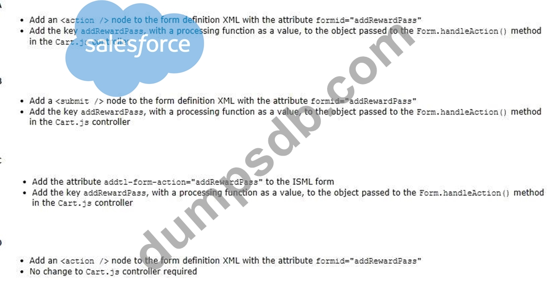 A Digital Developer needs to add a new form to the shopping cart page to allow customers to enter their rewards pass ID. There is already an existing Cart.js controller that handles processing of the other cart forms.