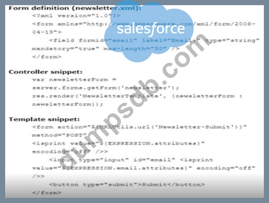 Which code should a developer insert at the EXPRESSION placeholder m the ISML template snippet above to have the form work as expected?