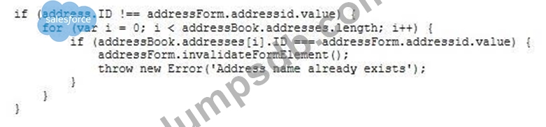 The following code ensures that an address ID CANNOT be used if it is already in use by another address in the customer's address book. There is a problem with the code.The error message for an invalid address ID is never shown to the user on the form field.