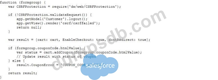 Universal Containers recently completed updates to their storefront shopping cart page. A problem has been discovered since the update. Users are no longer able to submit coupon codes on this page. Additionally, authenticated users who try to add a coupon are logged out.
