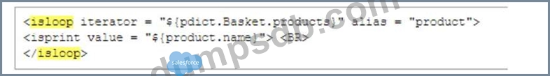 <isloop items ="${pdict.Basket.products}" var="product" status= "loopstatus">