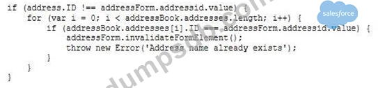 The following code ensures that an address ID CANNOT be used if it is already in use by another address in the customer's address book. There is a problem with the code. The error message for an invalid address ID is never shown to the user on the form field.