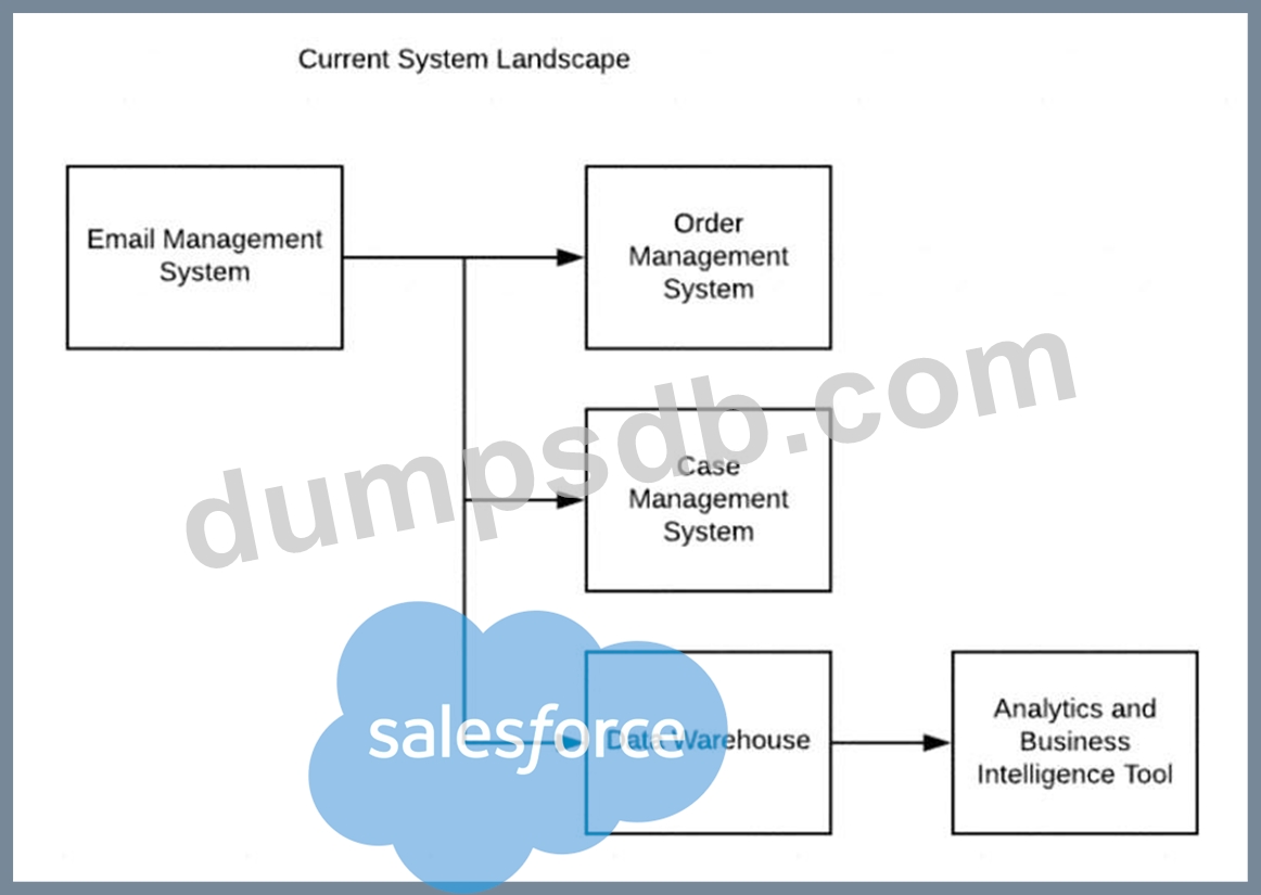 An Enterprise Customer is planning to implement Salesforce to support case management. Below, is their current system landscape diagram.