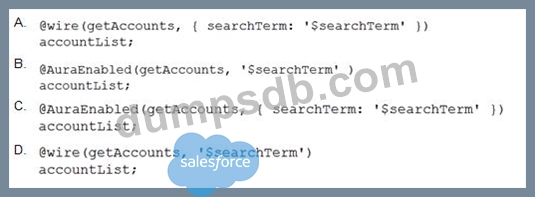 An Apex method, getAccounts, that returns a List of Accounts given a searchTerm, is available for Lightning Web components to use.